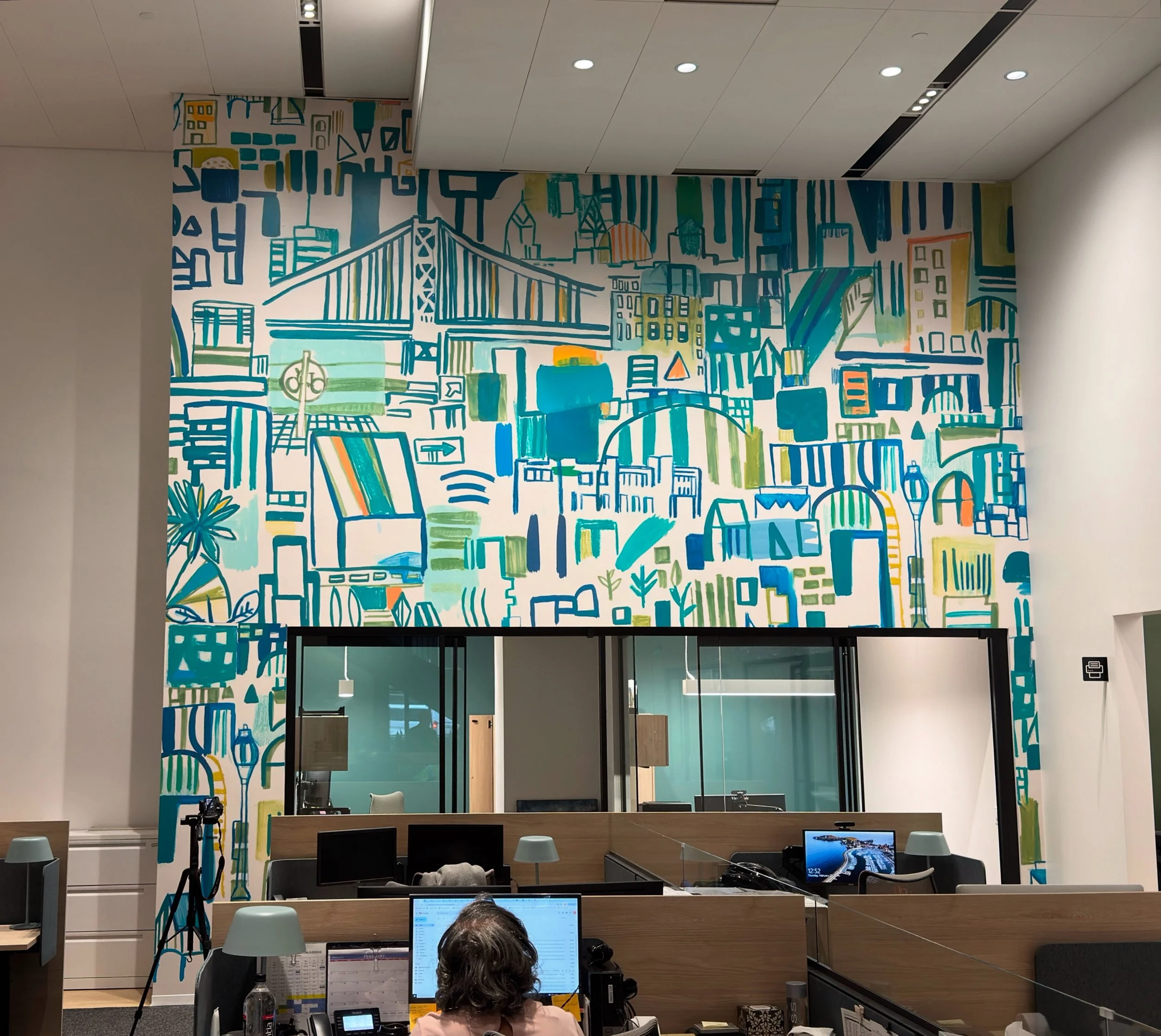 A photo of my finished mural at Center City District’s new office — 100 South Broad Street in Philadelphia, right at the corner of Broad and Chestnut. It was completed this past December.